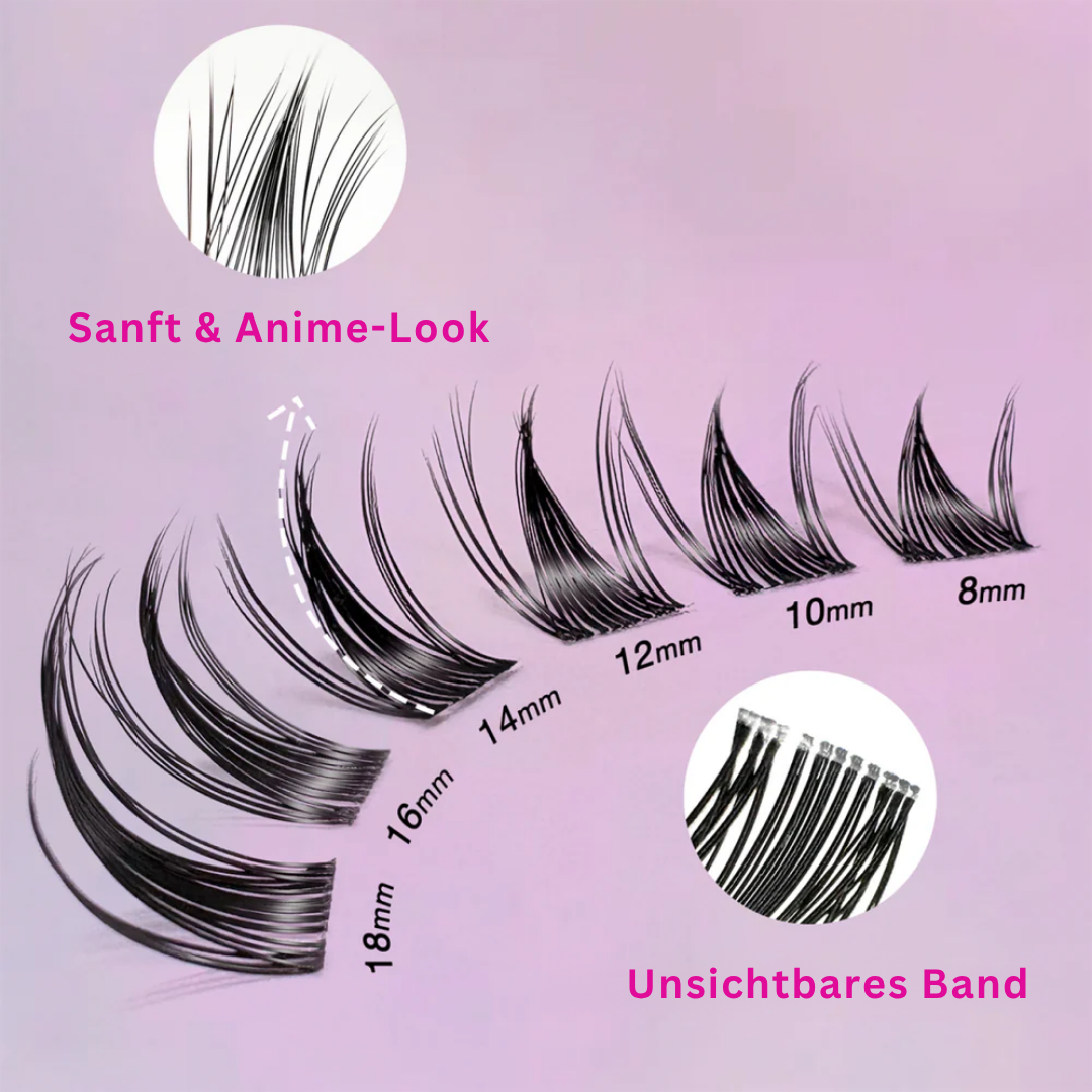 - ➤ 150 Wimpernbüschel in verschiedenen Längen (8 mm – 18 mm) für einen natürlichen oder ausdrucksstarken Look.